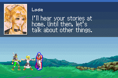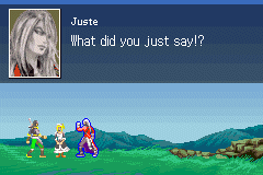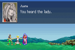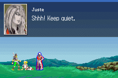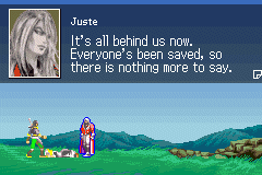 You can unlock a slight variance to this scene by completing the task of collecting all of the furniture and fully populating the castles' "drab room." Doing this will trigger an easily-missed change: Rather than placing herself between the two heroes, Lydie will instead stand directly next to Juste, clinging to his right arm (this can be seen in the final screenshot).