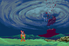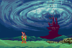 Maxim escapes the vile haunt and watches from a nearby mountain cliff as Castlevania is pulled back into its unearthly realm. The castle disappears as though never having been, and Maxim focuses on the lightened sky that now surrounds him.