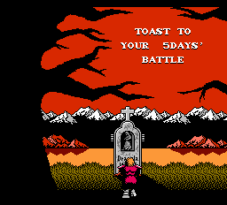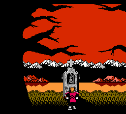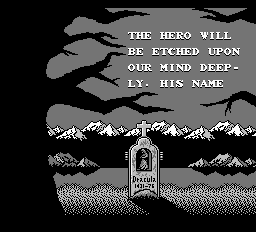 Simon triumphs over Dracula and stares down the headstone in which he rests beneath. Exhausted, Simon kneels down.