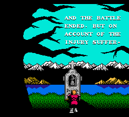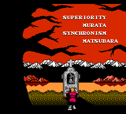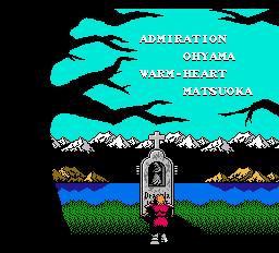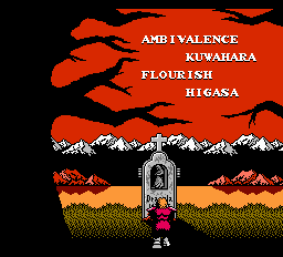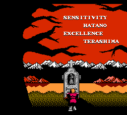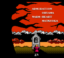 The ending of the Japanese version, exclusive to the Famicom Disk System, features the three usual epilogues, each extended to include a strange form of closing credits. Also, more strangely, the endings are done in English--broken English, for lack of a more lazy term.