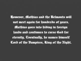 Outside, in Rinaldo's little cabin, the old man watches as the sunlight pours in. "So, he did it," he proudly says. Meanwhile, Leon escapes the ruined castle and walks off with the collapsed estate in his wake.