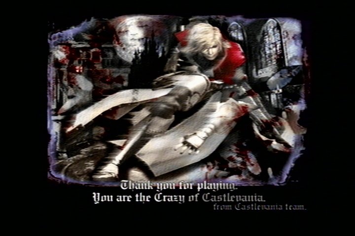When you clear the "Crazy Mode" with Leon, there's a bit more substance to the ending: There's an extra piece of artwork showcased during the credits, with the caption, "You are the Crazy of Castlevania." (The image below was supplied by Belmontvlad.)