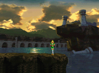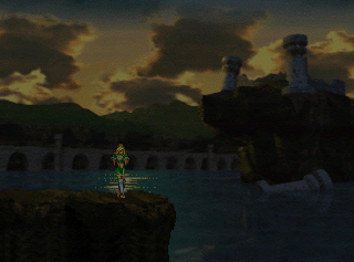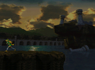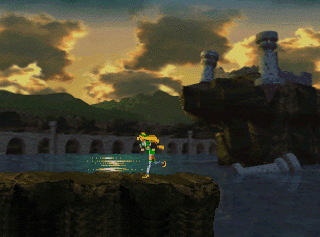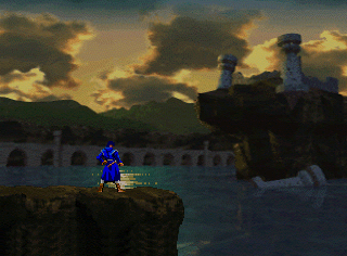 Watching on, Richter stands on a nearby shore and stares at the remains of Castlevania.