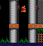 There are only two different types of terrain you'll travel across during your adventure: Blocks (which we call "bricks" or "bricksets" while in the game) and moving platforms. To get onto a moving platform, you'll have to study its movement and jump at the right time to land safely; this is made tougher if flying enemies are about. Once on a moving platform, you'll have to do the same calculation in order to jump to safety (in this regard, Castlevania is much more tame than its sequels).