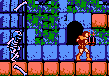 How Simon loses energy is subject to where he is in the game. Early on, where the challenge isn't all that great, Simon will lose 2 bars of energy for any type of enemy contact. As you get deeper in, to the game's middle portion, Simon will begin losing 3 bars for each hit. Finally, when you start to reach the final levels, you'll begin losing 4 energy bars for each hit, which will become the mandatory amount of damage you'll suffer for the rest of the game. In essence, you can take 4 hits at this point, so your mechanical skills will come into play as you dodge projectiles and weave your way past sometimes-questionably-placed enemies.