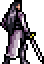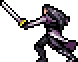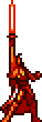 stabs his sword overhead while utilizing familiar sub-weapons; he can