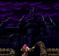 This is essentially the same game as its X68000 counterpart. However, the arranged mode features a remade intro with bolstered graphics using the 3D hardware of the PSX. For the regular mode intro, go to the Akumajou Dracula X68000 intro page.