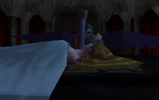 Each of the four characters in this game have their own prologue to their adventure. Cornell's has an accompanying intro scene while Reinhardt and Carrie retain their intros from Castlevania 64. Henry's intro is a simplified version of Reinhardt's and Carrie's. But first, the game begins with a scene of a woman running as a heavily-breathing presence (Ortega) chases her. This sets up the opening to Cornell's mission.