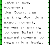 However, the Count was waiting for this exact moment. He was planning to use Soleil's sacred powers to regain his body.