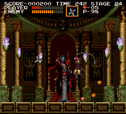 Japanese/European Differences This is the first of the Japanese games to recognize the Americanized title "Castlevania," and in kind, the Japanese version for this purpose has added to it the subtitle of "Akumajou Dracula X68000." It has no mechanical, musical or graphical changes--there's only the ever-present "Belmondo" name deviation. Though, the Japanese version does not contain the art gallery that you would otherwise unlock and stock by completing stages. |