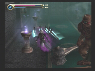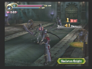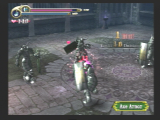 Objective/Overview After a four-year absence, the series returns to the realm of 3D in the form of Castlevania: Lament of Innocence. The team from KCET, fresh off the release of two rapid-fire GBA titles, tries its hand at tackling three dimensions where the last group of developers fell short. Due to its experience in the creation of side-scrolling adventure-RPGs, the Dracula X team attempts to bring this style of play into a fully realized 3D world with little in the way of casualties. Your objective is to take control of Leon, the first Belmont of legend, and clear five initial castle section, in any order, by exploring their entailed terrain and by destroying their boss guardians; thereafter, you can enter the highest point of the castle and work your way toward the game's final battle. (There are hidden areas castle-wide where you can battle special bosses, but traveling these paths is optional.) While the action isn't as free-roaming as the genre would suggest, you can return to cleared castle sections to tie up any loose ends. Leon starts with the Whip of Alchemy, with which he can execute combo attacks, but if he hopes to survive, he must enhance his overall ability using the game's simplified RPG system: He doesn't gain levels, but he will learn new attack and defensive maneuvers as he engages in subsequent battle scenarios; he'll don armor and accessories for increased statistics; and he'll lengthen his meters by finding max-up symbols. After finishing the game with Leon, more options will become available: (1) You can access the "Boss Rush" mode for a marathon boss battle (assuming you've beaten all of the game's bosses). (2) You can play in the "Crazy Mode," which is the game's "hard" difficulty. (3) You can buy an item at Rinaldo's shop that opens up a sound test on the title screen. And (4) you can play as once-a-boss Joachim Armster through a similar-but-undeterred mission; he, too, can access the "Boss Rush" mode after defeating the final boss. Additionally, by finishing the game with Joachim, you can unlock a third character called Pumpkin, who plays similarly to Leon. |