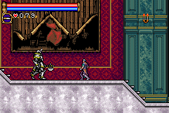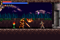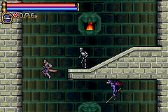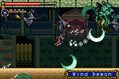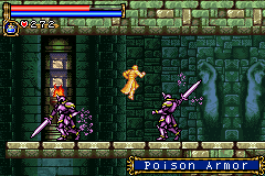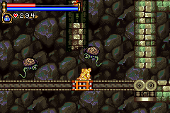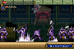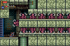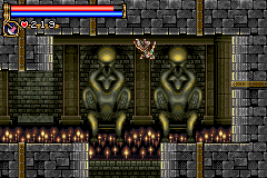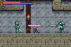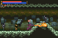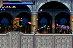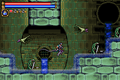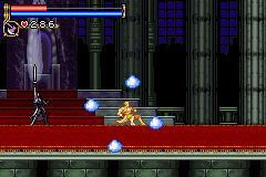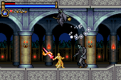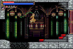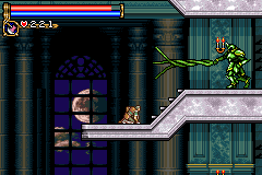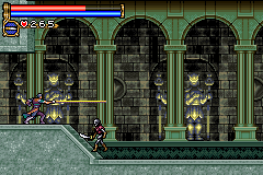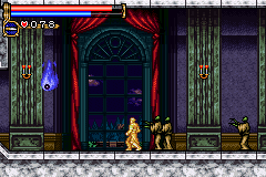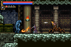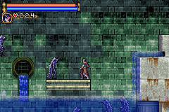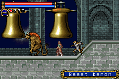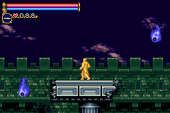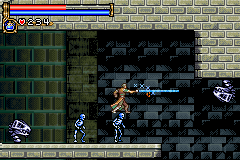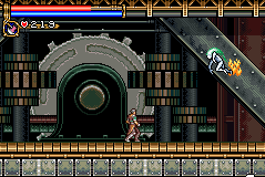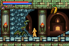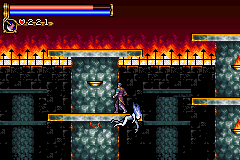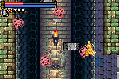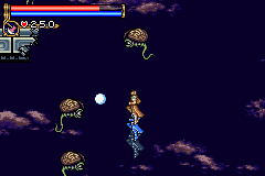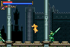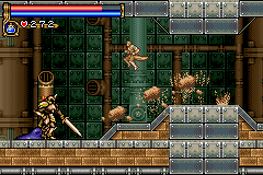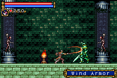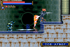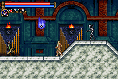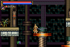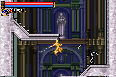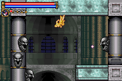 As in Symphony of the Night, Circle of the Moon's castle is broken up into separate sections--in this case fourteen--which offers to the player a nonlinear experience within the RPG-adventure genre. In order to successfully move about the castle, to its otheriwse initially-sealed-off areas, you'll have to first gain certain newer abilities. The listing below is the common order of navigating the castle if you wish to have the best success when trying to move into stronger-enemy territory.
