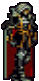 | The two calm and cool opponents stand at a distance, their respective garbs blowing in the wind. Proto Man runs towards Alucard, blasting his arm cannon every step of the way. Alucard continues to time his jumps perfectly, avoiding the onslaught. Proto Man corners Alucard and goes for a big blast. Alucard turns himself into mist, escaping from the now confused Proto Man. As Proto Man turns, Alucard gets in a couple of shots with his sword. Proto Man begins jumping wildly while firing his arm cannon. Alucard turns into a bat and hovers above, letting Proto Man wear himself out. Alucard lands on the ground, and Proto Man gets ready for one last flurry. Alucard, using the very last of his remaining magic, teleports out and reappears right behind Proto Man; as he opens his cape, he unleashes monstrous 3-directional fireballs. Proto Man can only watch as the flames fry his circuits. |