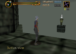 Hidden Treasures: There's nothing to this one, really. Castlevania 64 is a little bit Shadowgate-like in that you have free reign to search every nook of any room. Use the right-c button to search for food, potions and moon/sun cards in the surrounding areas--anything, including furniture, suits of armor, curtains and pictures. Whip objects like chandeliers, boxes and steel posts to uncover multiple items at once. Finally, search for ways to climb high atop each room to see special items hidden on arches, support beams and science displays. It ultimately saves you a lot of cash in preparing for the battle with Dracula, and you may not even need to ever call upon Renon.
