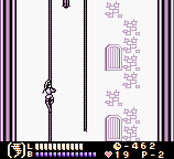 The holy water is located deep into this stage, somewhere around its end. When you come to the place seen in the screenshot to the left, go immediately upward. Continue traveling upward while making sure not to whip any of the white candles that are laying around. The water is atop this vertical area, and many annoying bats guard it. If you can survive the madness, the mystic weapon is yours. |