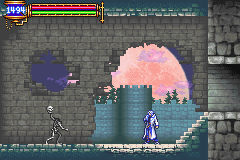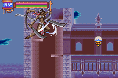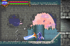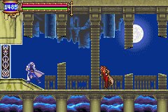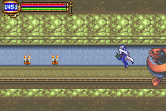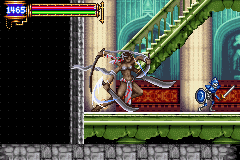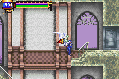 Sticky Situation: Aria of Sorrow's slime glitch reminds us of one of the great joys of experiencing video games: Enemies who become stuck on walls and obstructions and spasm indefinitely. Let Soma dish out such revenge on the annoying slime enemies while he's in direct control of them. Make your way to The Study and to where Soma is positioned in the first screenshot, then jump straight up and at jump's peak toss your slime Bullet Soul. If done correctly, the slime will reverberate between the sloped wall and the small platform, becoming helplessly stuck in the wall. (Contributed by Amar Youkai.)