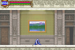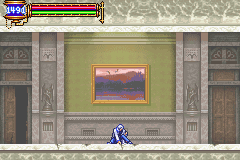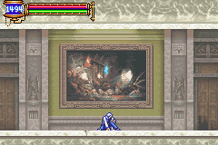 Harmony in Dissonance: Aria of Sorrow and Harmomy of Dissonance are distant adventures in terms of their respective placement in the timeline, but it's no secret that they were developed essentially in tandem, with Aria being the direct follow-up. References between the games, then, would be anything but random, as is the case of Aria's Dance Hall, in a room that houses two antithetical portraits of Castlevania (and a meeting with Julius)--one with lighter tones and a clear sky, the other darker with bats seen flying its ominous skyline. While this could be interpreted as the castle being viewed in states of sunrise and sunset, it's more likely insight into the haunt's "true nature," which we learned about during Harmony's dual-castle crisis. (Contributed by Danny.)