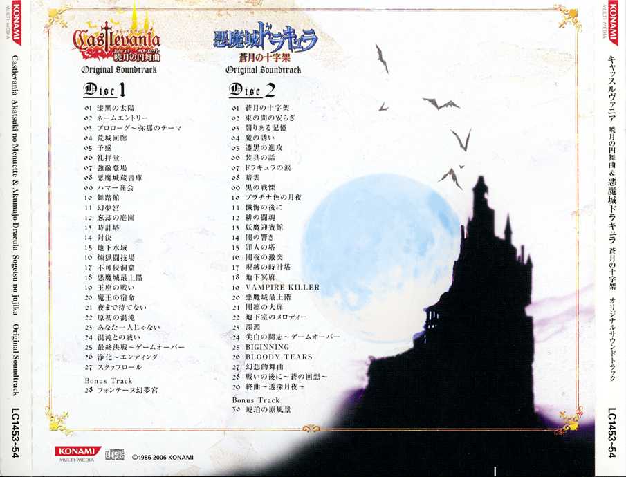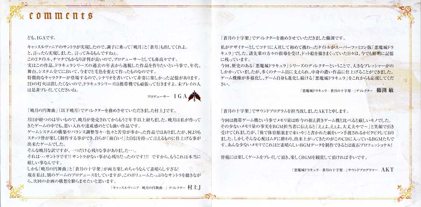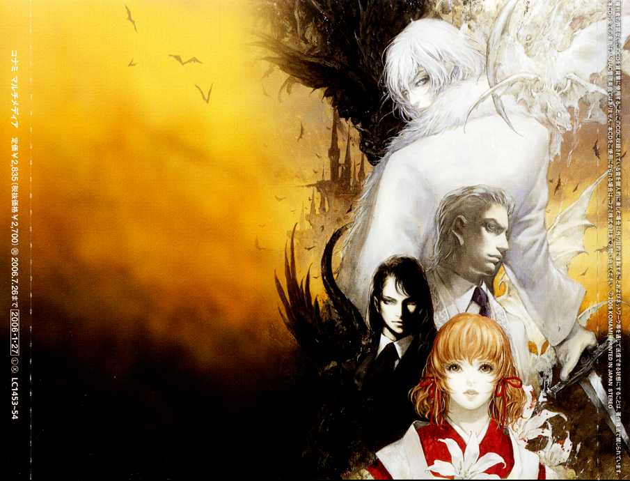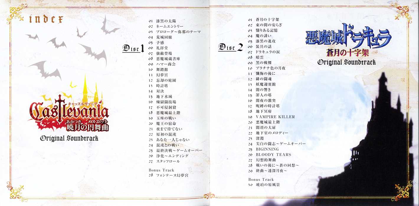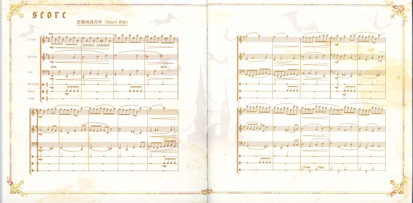 As is the case with a few other closely related titles, Atatsuki no Minuet and Sougetsu no Juujika share the same soundtrack. This package comes with a booklet, filled with artwork, commentary and sheet music; two CDs on which the games' tunes are covered; and a pack-in poster--a two-sided fold-out featuring character renders. (All scans were sent in by JPCVFAN.)