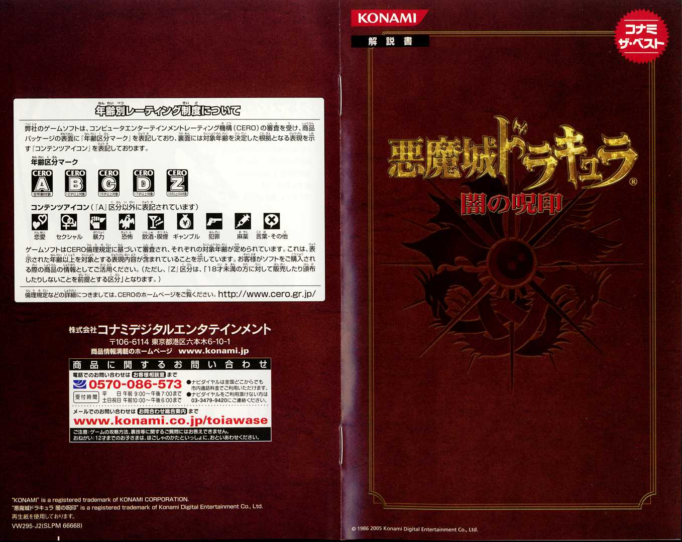 Konami in 2007 re-released Yami no Juin under its Konami the Best series. The scans here show the casing, the DVD-ROM, and manual shots not seen in the original version's (the rest of the manual matches the original). All scans were submitted by JPCVFAN.