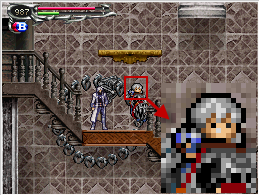 No Time to Reflect: There's nothing worse than having a bad hair day without being able to ever know about it. Thus continues the life of Alucard, whose flowing white mane (which came to replace his suave, slick-backed job) is obviously the result of that dreaded vampire trait--the inability to cast a reflection and thus discover the plight of hideously bad art direction. Alucard is reminded of this truth in Dawn of Sorrow whenever he passes in front of the castle's showy mirror displays. (Contributed by Sr. Lan Belmont.)