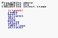 The "GAME" option takes you to a sub-menu whose ten options represent different areas in the game. You can select to drop into and start the game from any area you so please, down to the exact room if you toggle the number that appears to an area-name's right side.