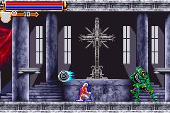 "TAKEDA" allows you test your skills against any from a collection of forty-six of the game's enemies. Though, some are repeat enemies with instead special conditions; there are, for example, two battles with boss Pazuzu--one merely featuring a pre-battle animation sequence. The testing ground is your average Boss Rush room, and exiting left at any time will result in Juste becoming trapped in a stairway-connecting room until you reset the software.
