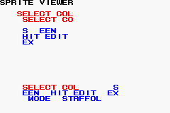 "TEST VIEW" takes you to the debug menu's sprite-viewing tools, of which there are four. Sadly, they lack the functionality you'd expect and allow only for the toggling of three separate properties--but only for demonstration purposes.