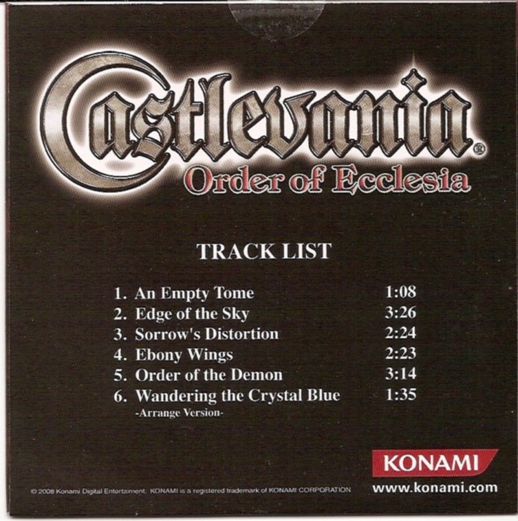 Order of Ecclesia had available a bonus for those who chose to pre-order the game at GameStop and other select venues. Packaged with the pre-order was a music sampler--a CD featuring six rearranged versions of songs present in Ecclesia's soundtrack.