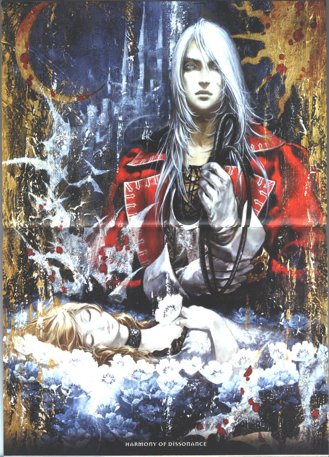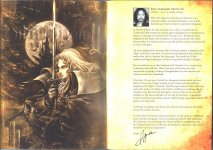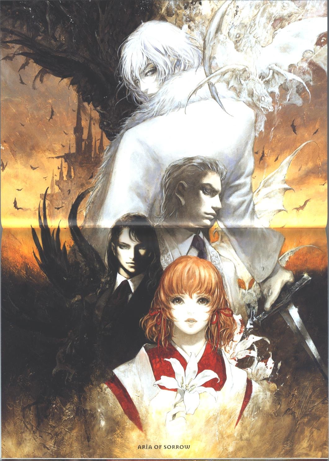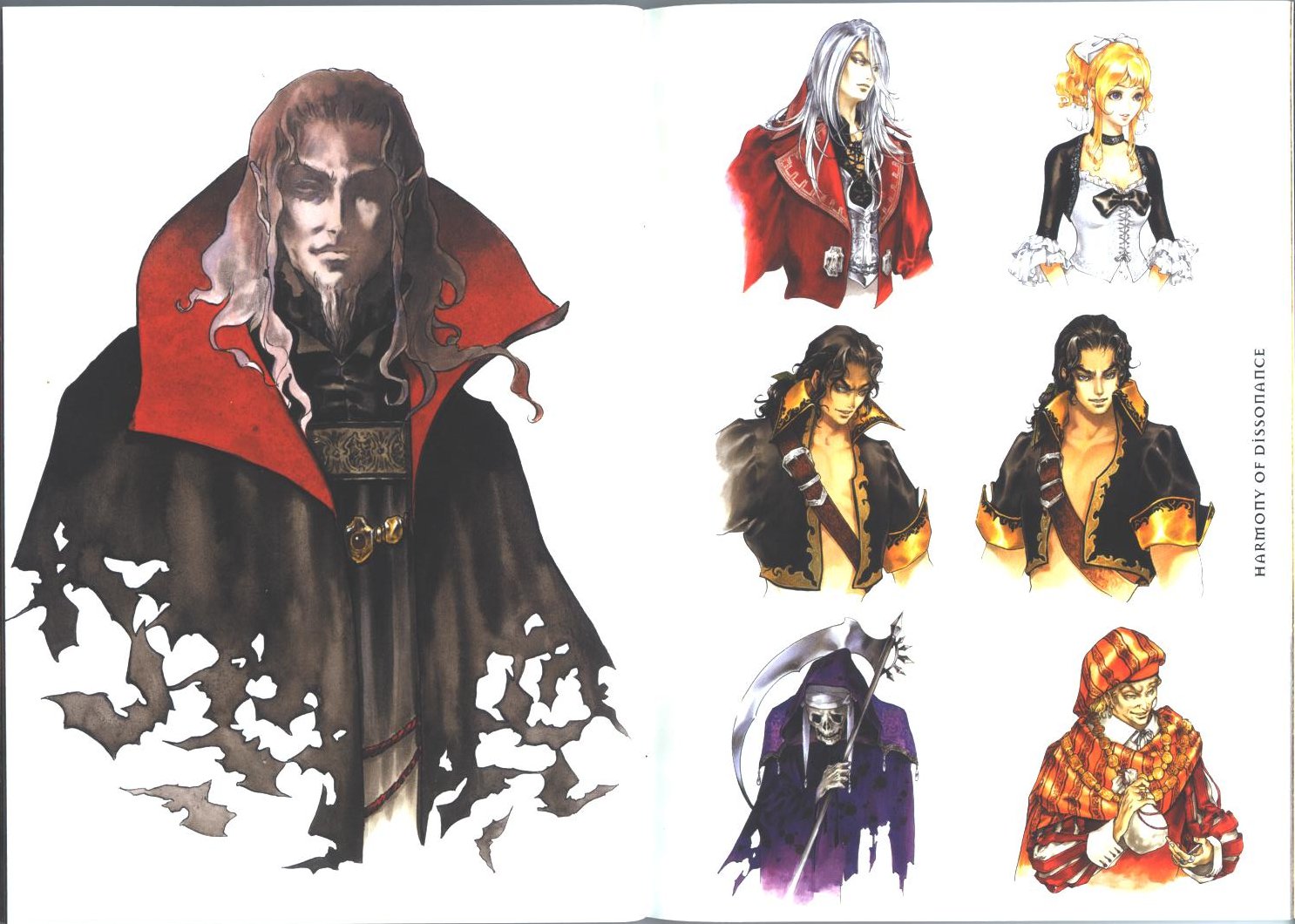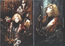 Like the music CD, the forty-four page art book covers all games ranging from Castlevania to Portrait of Ruin. Included, too, are profiles and thoughts of the Big 3: Producer and director Koji Igarashi, music and sound composer Michiru Yamane, and artist/character designer Ayami Kojima. Since the files are so large, they are listed on this page as thumbnails (sans covers); to see a full image, click on any thumbnail.
