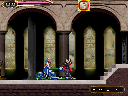 A Falling Out: The Revenge: If in Castlevania: Dawn of Sorrow you were the intense soul-collector, you'll recall that you could put your Persephone ability to "good use" and torment the demon of the same name. Perhaps still stinging from the experience, Persephone years later turns the table and now assaults the heroes in much the same way. (Contributed by Sr. Lan Belmont.)
