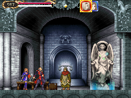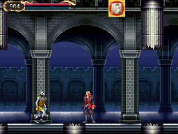 Death's Revenge: Poor ol' Death--he's just as hapless as his best buddy when it comes to stopping the Belmonts. Portrait's Reaper, however, has up its tattered sleeve a trick that extends beyond the realm of normal gameplay. Failure to listen to Death's boring post-defeat speech will result in Jonathan walking into a fiendish trap; that is, if you skip the dialogue scene, exit to the left, and then immediately return to the previous battlefield, you'll become stuck within the chamber whose doors will never again open. Consider this fair warning: Listen to the Reaper. The glitch has been removed in the European version. (Contributed by Amar Youkai.)