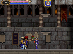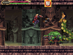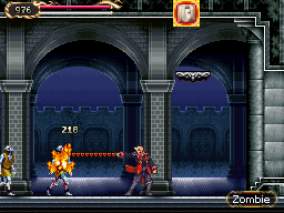 Death for the Dead: One of the series' basic RPG elements introduced and made standard in Symphony of the Night was "Enemy Weaknesses." Dark enemies would fall to light, icy foes to fire, watery adversaries to lighting, and so on. Portrait closely follows the blueprint but adds a tangible result to the use of fire-based weapons against the undead; mainly, Zombies--in addition to suffering extra damage--actually shed their flesh and become your basic bone-throwing Skeleton. This mechanic affects all enemies of the type, including normal Zombies, Wights and Ghoul Kings. (Contributed by Danny.)