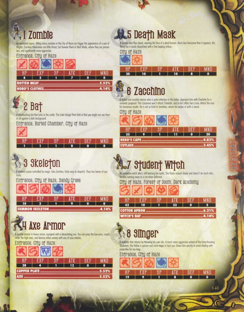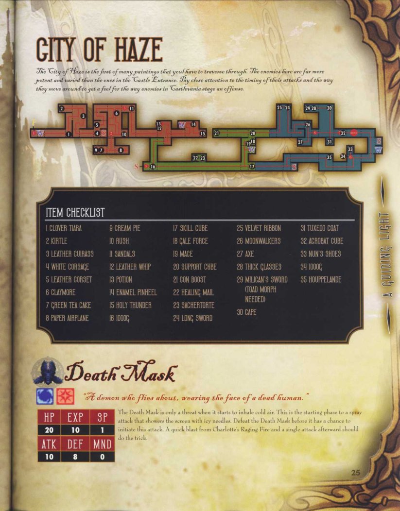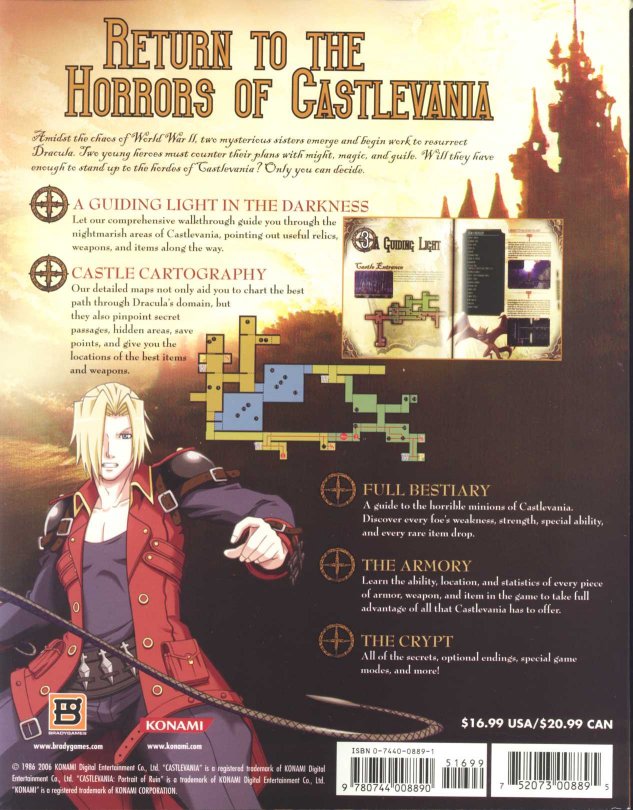 It's in Japan where Konami publishes its own strategy guides, as it did for Gallery of Labyrinth (the Japanese version of Portrait of Ruin). However, it's Brady Games that is licensed to create for the U.S. official guides, which are content-wise very similar. Featured below are the front and back covers plus ten sample shots, which show off artwork and other magazine features. (All images have been contributed by JPCVFAN.)