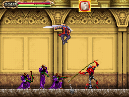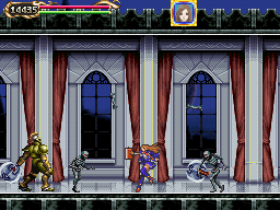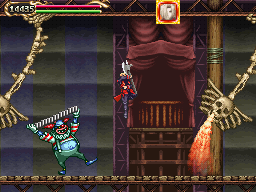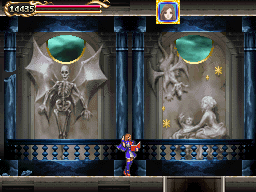 In comparison to the castles seen in recent titles, Dracula's castle is in Portrait of Ruin more compact and rather manageable, the heroes able to move about a large portion of it from game's start. Where Portrait makes up the difference is in the area of paintings--nine magically cordoned-off areas each with its own theme. The game's true restriction is in regard to these paintings, which will be accessed over time. In covering the layout, I'll be separating areas into two categories: Castle Areas and Paintings.