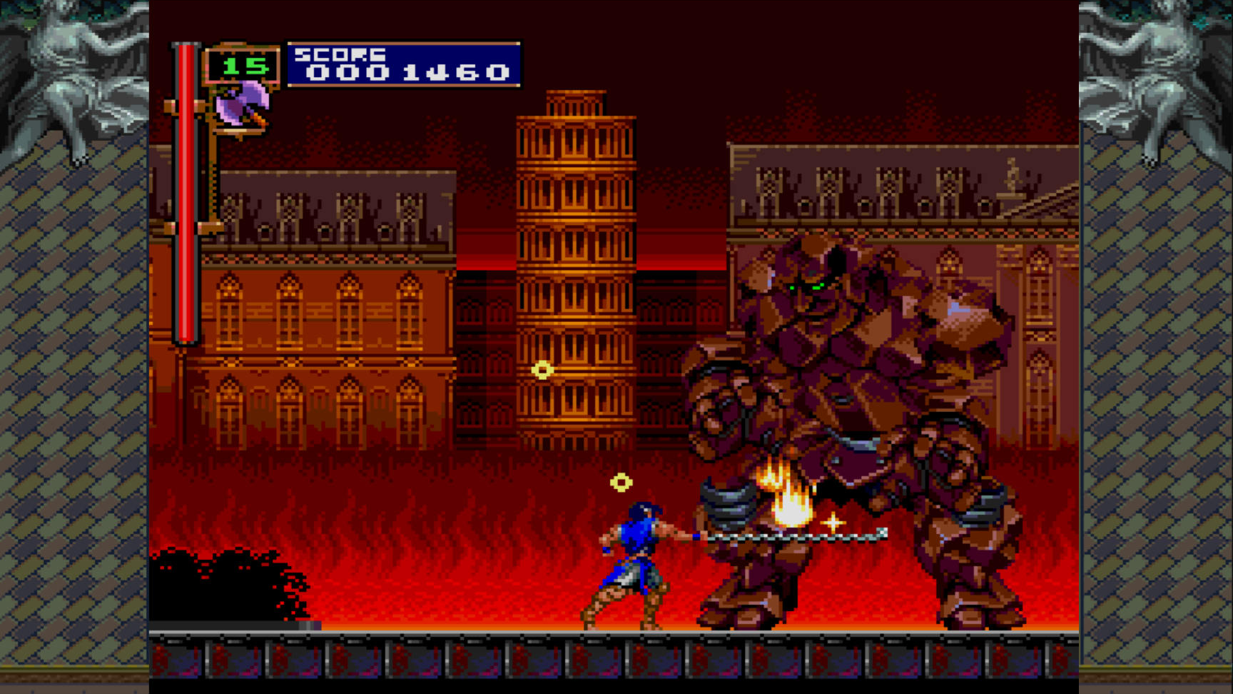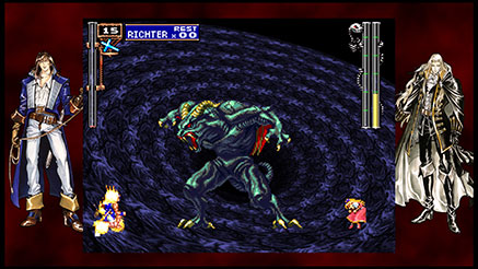 The straightforwardly titled Castlevania Requiem: Symphony of the Night & Rondo of Blood is a PlayStation 4-exclusive digital compilation that pairs Dracula X: Chi no Rondo and its direct sequel Castlevania: Symphony of the Night. Both ports are enhanced: They've been upscaled to 4K/1080p, and they now feature multiple high-resolution backgrounds, different rendering options (smoothing, etc.), and full trophy support. The compilation can be purchased in the PlayStation Store.