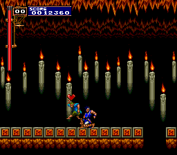 Showstopping Number: Watching one of these new-age divas bolt out a tune and then celebrate by tossing herself into a fiery pit? It's not just what one would call society's "wishful thinking" - it's the means for this glitch, as discovered by Amar Youkai. Here's how it's done: Select to play as Maria on the game's seventh stage, the Clock Tower, and find yourself a music-book sub-weapon. Usher Maria into a near-death scenario (short on energy and within one hit of being killed), pull off an item-crash, and then proceed to incur death upon our hero with a sure kill (jumping into a spike trap, for example). Upon resuming action, any striking of an enemy will cause the game's music to cease; to restore things to normal, pull off the very same item-crash.