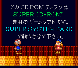 Richter the Tease: As opposed to other, more-easily-defined consoles of the time, the Turbo-Grafx and its PC Engine counterpart were a mess of upgrades and add-ons. Convincing consumers to continue investing in such expansion required tantalizing software like Dracula X: Rondo of Blood, which was one of the titles that utilized the Super System Card 3.0. Konami threw a bone to System Card 2.0 users by allowing them to boot up the game and play a short demo stage as featuring cartoon versions of Rondo's main hero and its environment; clearing the stage earns the player a warning urging he or she to buy the 3.0 card upgrade or graduate to the Turbo-Duo, which has the card built in. In short: Boot up the game CD using System Card 2.0 to experience a short but distinct flavor of Rondo. Note that booting the game when the game's memory is full will earn a separate warning (as seen the last picture). (Images provided by Akumajou Otaku and ReyVGM.)