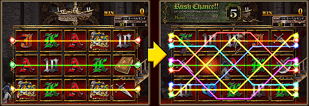 Multi-line slots often feature bonus modes, which are activated when the player scores the game's trademark symbols in large number and in a required pattern. The action then shifts to an upper screen where faced is a special challenge that will net the player varying amounts of credit depending upon his or her luck/performance. For instance: A mutated chicken will run out onto the screen and ask you to select one from five envelopes, each containing a different amount of credits. Castlevania: The Medal is a multi-line bonus slot machine that features three slots, five reels, and nine paylines.