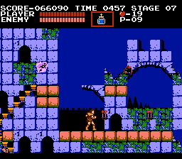 Platform Prowess: Castlevania has an interesting palette limitation: Because Simon already has his own assigned colors combined with the already loaded background decor, moving platforms will be forced to glow in sequence with Simon when he collects an invisibility potion. (Contributed by Danny.)