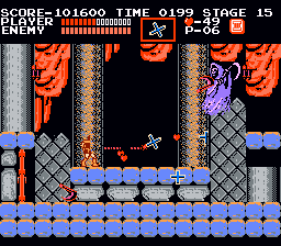 Stopped Dead: For those who aren't computer literate, let's just say that games are sometimes made available in slightly different revisions; this is usually done when a development house wants to print an updated version of its game as bereft of the bugs and glitches that haunted the previous release. While customers are likely to never realize that this has happened, an unfortunate owner of an early version may stumble upon a game-killing glitch or two, as they may in version PRG0 of Castlevania. The battle with Death is remembered mostly for its chaotic, projectiles-abound tension, which is not always good for the heart of an old NES game; in fact, the presence of more than three sickles and three Belmont sub-weapons at one time can easily result in the game's freezing. (This information is credited to http://tcrf.net and was sent in by Christopher M.)