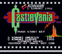 This "sequel" to Castlevania features new textures, a new look for the traveled Simon, new enemy types, and unique level structure. Join Simon Belmont in his final adventure--a bid to scour Transylvania and hunt down the resilient Count Dracula. (Note: This hack is made to work with the European [PAL] version of Castlevania.) | ||