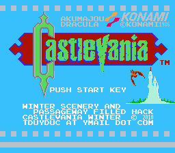 Castlevania: Horror of Dracula is a reworked Castlevania. Save for color differences, Horror's biggest appeal is some new level design, with it some new pathways, traps, challenges, and other hidden secrets. 11/5/12: The final version (Version 2.0), now up for download, features new sprites for Simon and the enemies; more-difficult Medusa and Dracula battles; a more-selective whip; and more minor changes. The ZIP up for download contains files for three challenge-levels. (Note: These IPS files work only with the European version of Castlevania.) |