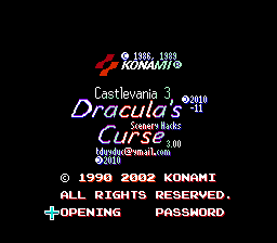 The man known as Stoneheart has brewed up some scenery-changing IPS files for the NES standouts Castlevania and Castlevania III: Dracula's Curse. These edits alter not only palettes but also some stage structures, music, and enemy placement; the themes available are "Scenery," "Winter" and "Dark," which create the appropriate changes in the respective games' decor. These IPS files will work with both the original and Konami Classics versions of the games. |