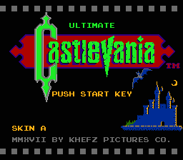 Ultimate Castlevania is a hack created in celebration of the Castlevania series' 30th anniversary. The files contained with this IPS pack modify the game's graphical presentation and make some nifty alterations to its level design. In total, six files are available: Three unique reskins and their related difficulty-increasing "Crazy Mode" modifiers. Also included is a manual--a cool redesign of the orginal's made to reflect Khefz' alterations. | ||