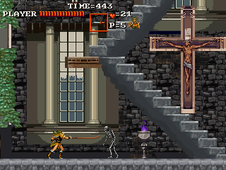 Super Castlevania 2022 is a remake of the original Castlevania, and it's based on the Orbreck's unfinished Super Castlevania III engine. It includes all kinds of graphical and mechanical upgrades (including new moves like backflipping, sliding and multi-directional whipping), and it contains some hidden stages and bosses. | ||