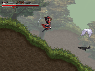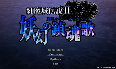 Stranger's Requiem is the follow-up to the high-quality Scarlet Symphony, featuring the same solid play-formula plus some new stylings like pre-stage weapon-selection. You this time control former boss Sakuya Izayoi, who returns home to meet her master, Remilia Scarlet, but instead finds Yukari Yakumo, who has taken Remilia; to reclaim her mistress requires a trek through Scarlet Castle. Only a demo is available without direct purchase; English and French translations can be downloaded here. |
