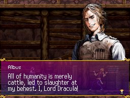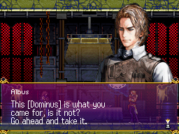 Albus was appearing to Shanoa not within her mind but from inside Dominus, itself, which she had absorbed. The holy whip's legacy made many such things possible. After he was betrayed by Barlowe, Albus fled with Dominus, effectively taking her place as bearer and putting her out of harm's way. Alone, he continued his research into methods of controlling Dominus, which is Dracula's very power. To that end, he required the blood of the sacred Belmont clan, whose heritage he hoped to trace. "The villagers," Shanoa deduced correctly. Fate drew them to Wygol--all thirteen of the village's habitants descended from that bloodline. Though he studied their blood with great diligence, the answer escaped him, and he was consumed by Dominus. His body gone, his spirit remained, absorbed into the glyph, his soul now dwelling within Shanoa alongside the power of Dominus. By all accounts, Dominus should have overpowered him and erased his will; however, because the the villager's power coursed through Shanoa, he remained tethered to her--possibly due to her absorbing the glyphs he used to imprison them. Shanoa still didn't understand why Albus would want to take her place. "Let's just say I knew what mattered to me," he explained. It was a path he had to follow. If she didn't fully comprehend, it was of no real concern. He did, however, make her promise one thing: "No matter what happens, you mustn't use Dominus." Knowing its propensity to ultimately consume one's life, he asked that she trust him on this matter. She did. His time at an end, the vision of Albus started to fade though Shanoa had more questions. "You gave up your life for my sake, and I don't feel anything," she said, facing the reality that everything was stolen from her. Only one person had the answers.