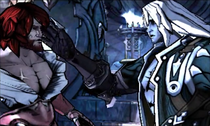 Alucard entered into his final destination only to witness Dracula standing defiantly against his red-haired friend, who in response to the new arrival exclaimed: "It cannot be." Dracula, in contrast, was quite pleased to see the lugubrious figure: "Good of you to join us, Alucard," he welcomed. Alucard had not come for a family reunion--fate had given him a second chance, and he was there to finish what he started all those years ago. Disappointed, Dracula explained that he had hoped Alucard would join him in his war against the humans. Alucard could not accept such solicitation, for he had no room in his existence for hatred. "No matter," Dracula said, shifting his attention toward Simon. "The Belmont blood cannot be allowed to continue!" As Dracula lunge toward Simon, Alucard intervened, distracting the Dark Lord and giving the heroic pair an opportunity to double-team the Count. The resilient Dracula managed to knock Simon out of the picture, leaving him unconscious and evening the odds; father and son dueled until Dracula retreated to his throne, from where he used his magic to take control of the insensible Simon. Careful not to harm what he now recognized as his son, Alucard continued to grab and shake Simon, eventually breaking Dracula's control over him. Growing tired of the games, Dracula returned to action, grabbing hold of Alucard using his weapon and draining his life-force; Simon regained his senses and struck Dracula before he could apply the deathblow. Combining their might, the duo ultimately overpowered the Dark Lord. Alucard grabbed Dracula from behind, hooking his arms; "Now, Simon!" he shouted, signaling to his son that he had procured for him the opportunity he'd awaited ever since his mother's death. Relishing the occasion, Simon ferociously charged forward, plunging his Combat Cross into Dracula's chest. There was no dramatic death, nor were there any cryptic final words--Dracula had simply been obliterated.