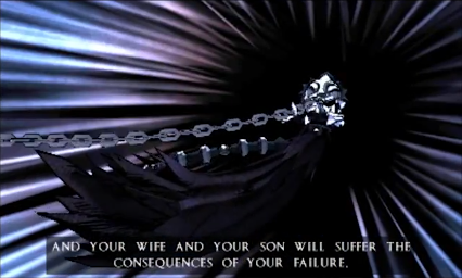 Trusting the visual advice he had received from the Lost Soul, Simon headed onward and upward, through the library and into the courtyard, whose branching interior held the item he most desired: The Combat Cross, which was conveniently enshrined upon a pedestal. He took possession of the weapon, which moved him one step closer to completing his mission. As he briefly mediate, the ghostly Necromancer appeared and yanked the Combat Cross from his grip. "Your father, too, was unworthy of this," it said, its blitzing rush knocking Simon back through the room's stain-glass window and down into the courtyard proper. Simon quickly recovered and with the assistance of the Spirit of Belnades defended himself against the Necromancer's initial offensive. It was just like Simon to "hide behind a woman" it taunted before commandeering the power into the tip of its scythe. Simon, left to his own devices, pierced the Necromancer's veneer and shattered its scythe, evening the playing field. Simon eventually floored the soulless phantom, extracting from its innards the Combat Cross that rightfully belonged to him. This victory earned him the approval of the now-ever-present Lost Soul, whose motivation at least to Simon was not clear. Now with the means to do so, he headed back into the inner cells and used the grappling capability of the Combat Cross to reach the upper chamber and approach the sword-wielding specter; though it at first took a defensive stance upon sight of Simon, it recognized the coruscated blue aura as projected by the Spirit of Sypha, which reached out to the sword-brandishing Sprit of Schneider, who now knew he could trust and join with the red-haired vagrant.