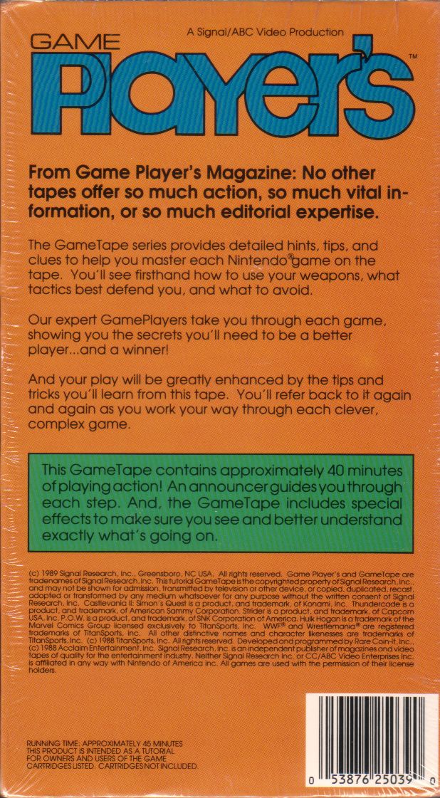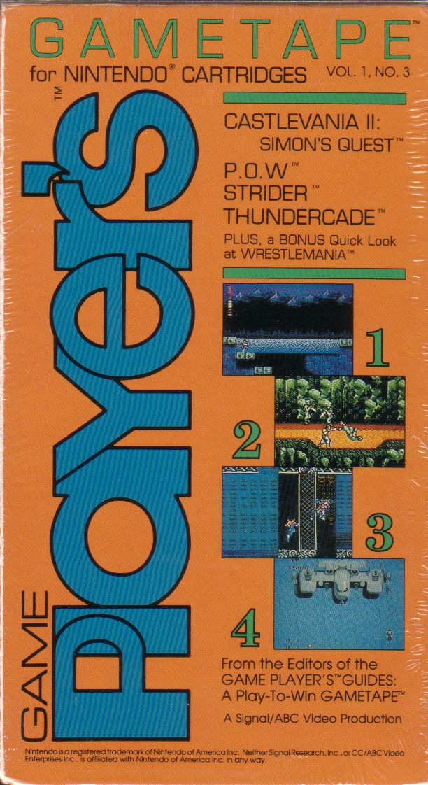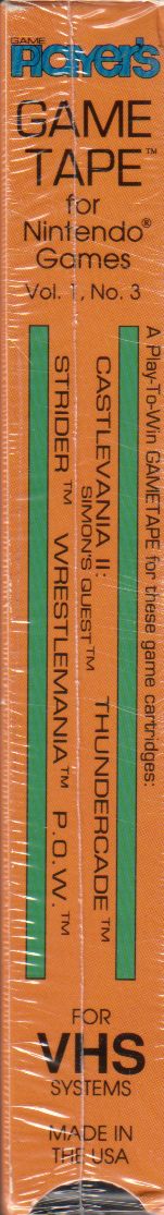 In the late 80's, Game Player's put out a series of home videos under the title Gametape, which offered helpful tips and information for video games. Such tapes covered NES titles like Castlevania II: Simon's Quest, which was for some reason featured in three separate volumes. To see the packaging scans for the individual video tapes, as contributed by Protogem, click on the volume of your choice.